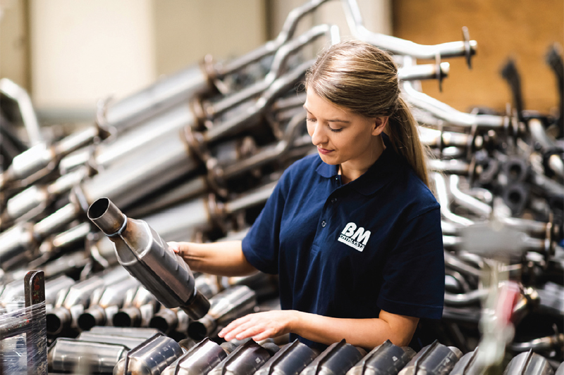 Roční produkce firmy BM Catalysts je cca 500.000 kusů, přičemž výfukové díly jsou vyráběny z nerezové oceli třídy 409, kterou upřednostňují i výrobci originálních dílů. Všechny nabízené produkty a naprostou většinu jejich komponentů firma vyrábí ve dvou vlastních závodech ve Velké Británii. Veškeré homologované katalyzátory i filtry pevných částic BM jsou testovány v souladu s nejnovějšími předpisy a zaručují plnou kompatibilitu s výrobky OE.