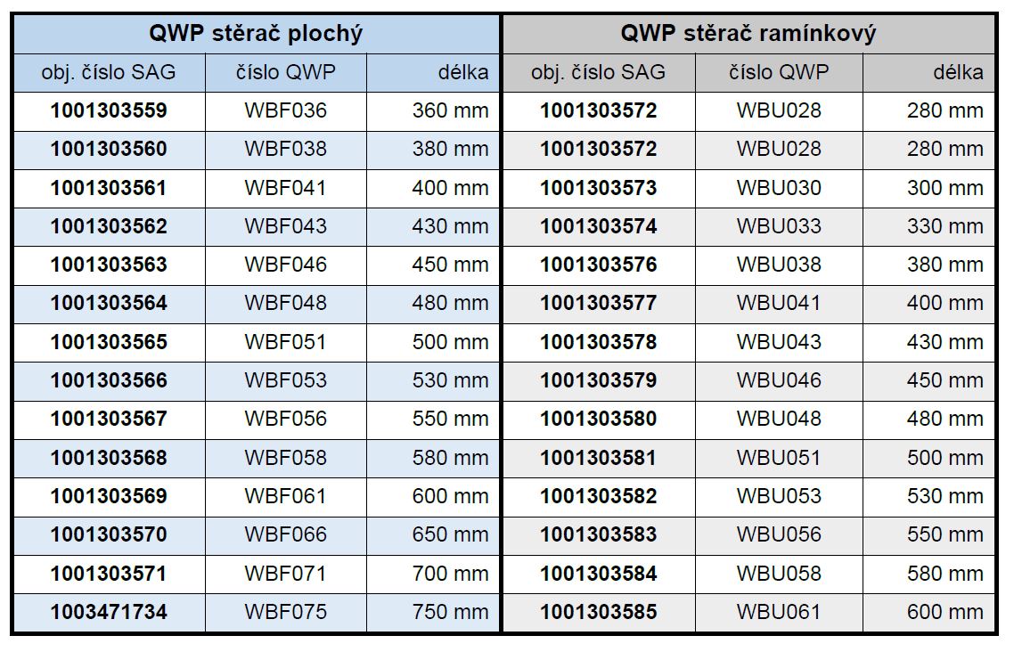 Sortiment exkluzivní značky QWP v nabídce Swiss Automotive Group CZ v minulých dnech rozšířily přední stěrače, a to v obou aktuálně používaných verzích – tedy pružné ploché i tradiční ramínkové.