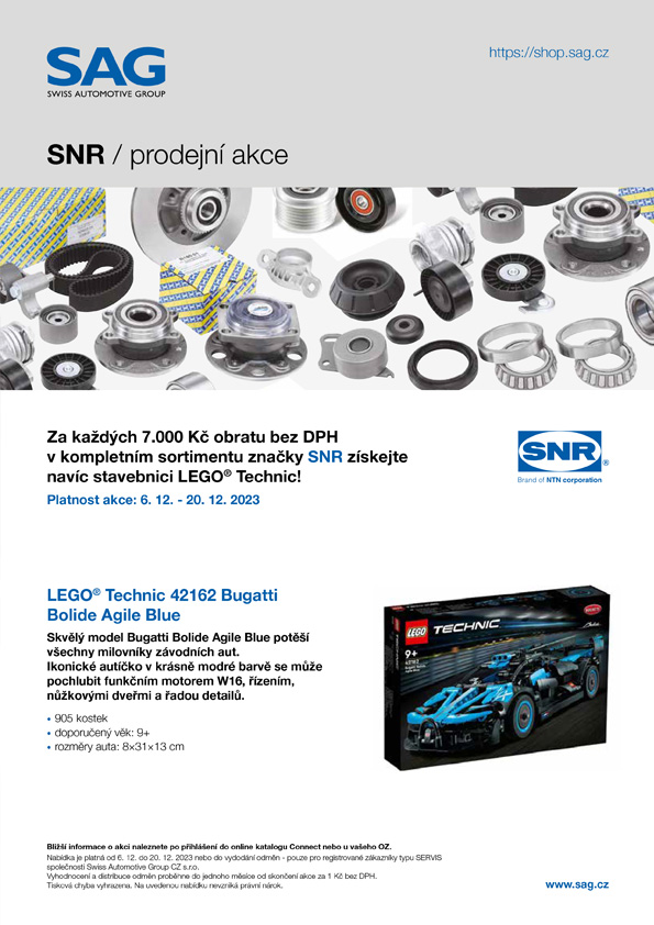 sag prodejni akce snr 2023 12Krásně modré a skvěle propracované Bugatti Bolide ze stavebnicové řady LEGO® Technic bude atraktivní odměnou za prosincové nákupy ložisek a ložiskových sad se značkou SNR.
