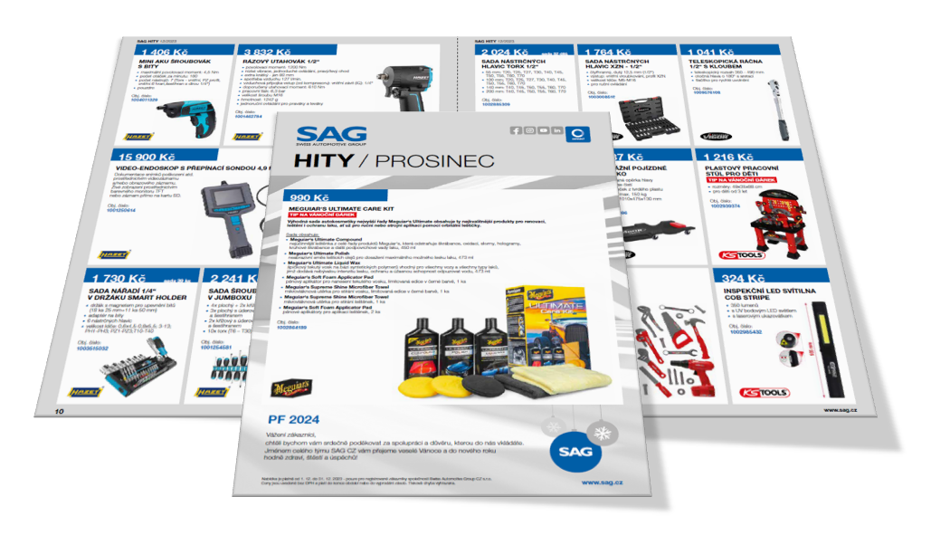 Další stránky plné vybraných akčních položek garážového vybavení, různého nářadí či technických kapalin a autokosmetiky v akčním katalogu SAG HITY / PROSINEC doplňuje i několik tipů na vánoční dárky....